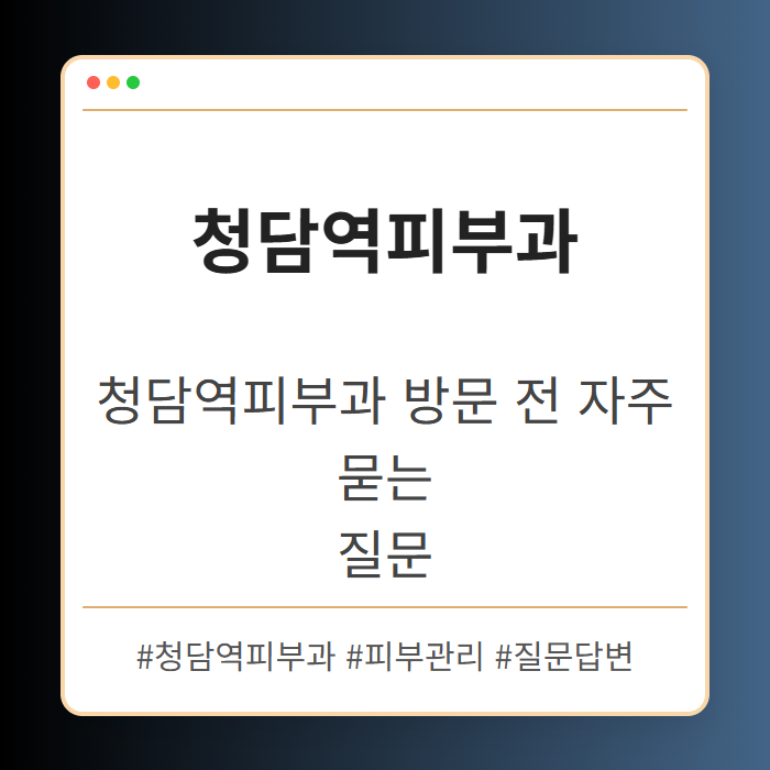 청담역피부과를 방문하기 전, 자주 묻는 질문들에 대해 알아보세요. 진료과정, 치료방법, 비용 등 다양한 정보가 포함되어 있어, 방문 전 준비에 도움이
